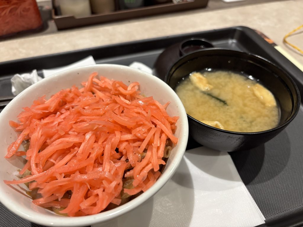 吸い寄せられるように駅前の松屋へ入り、お約束の真紅の丼が完成。