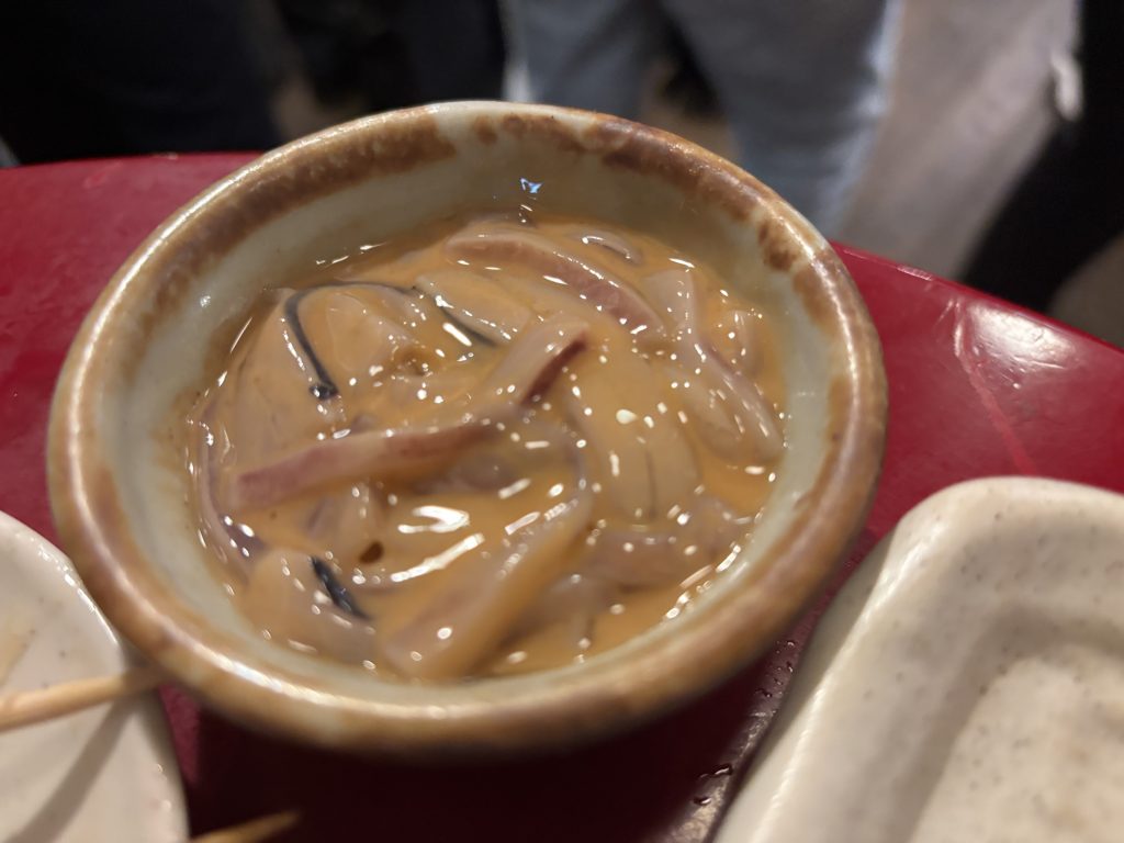 専用タレで食べれば、さっぱりクジラの旨味を堪能できる🐳